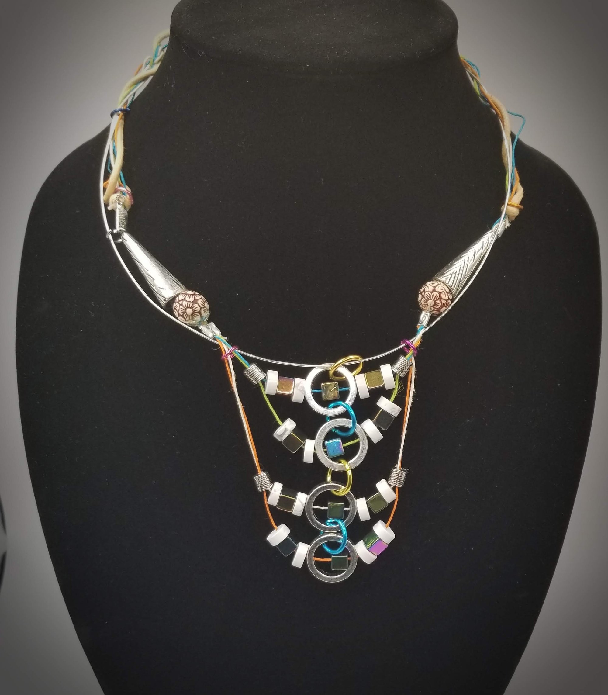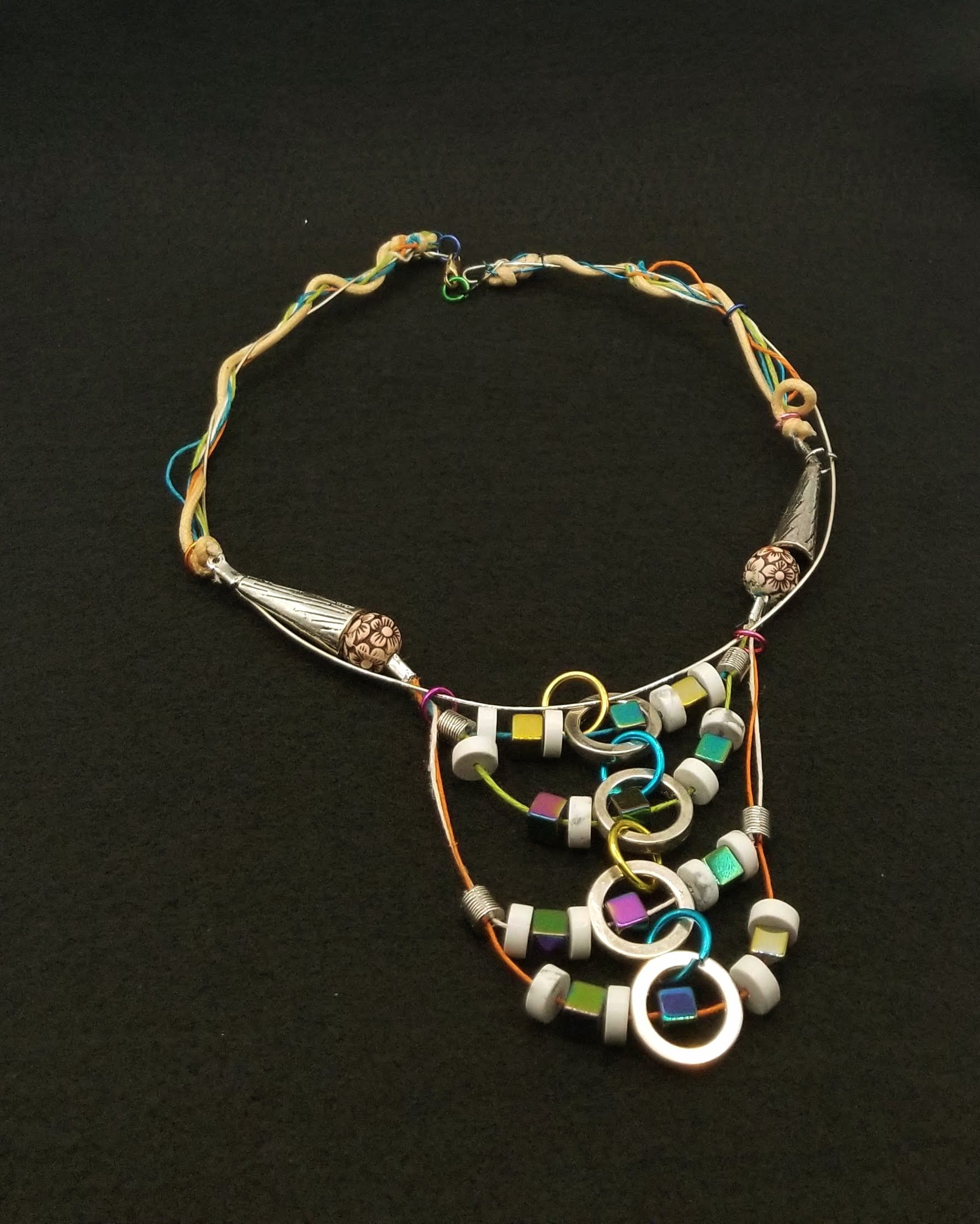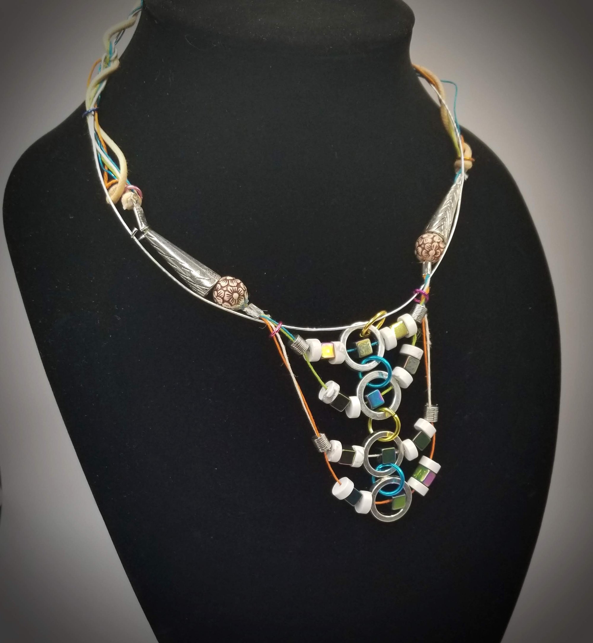 Item #900512 - 17 inch - Mixed element collage, multi cording/wire blend. Mixed deco accents. Gold filled lobster claw.