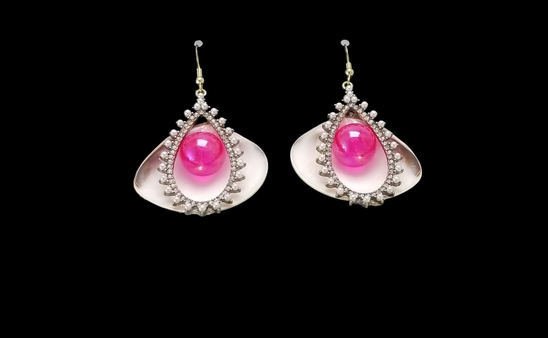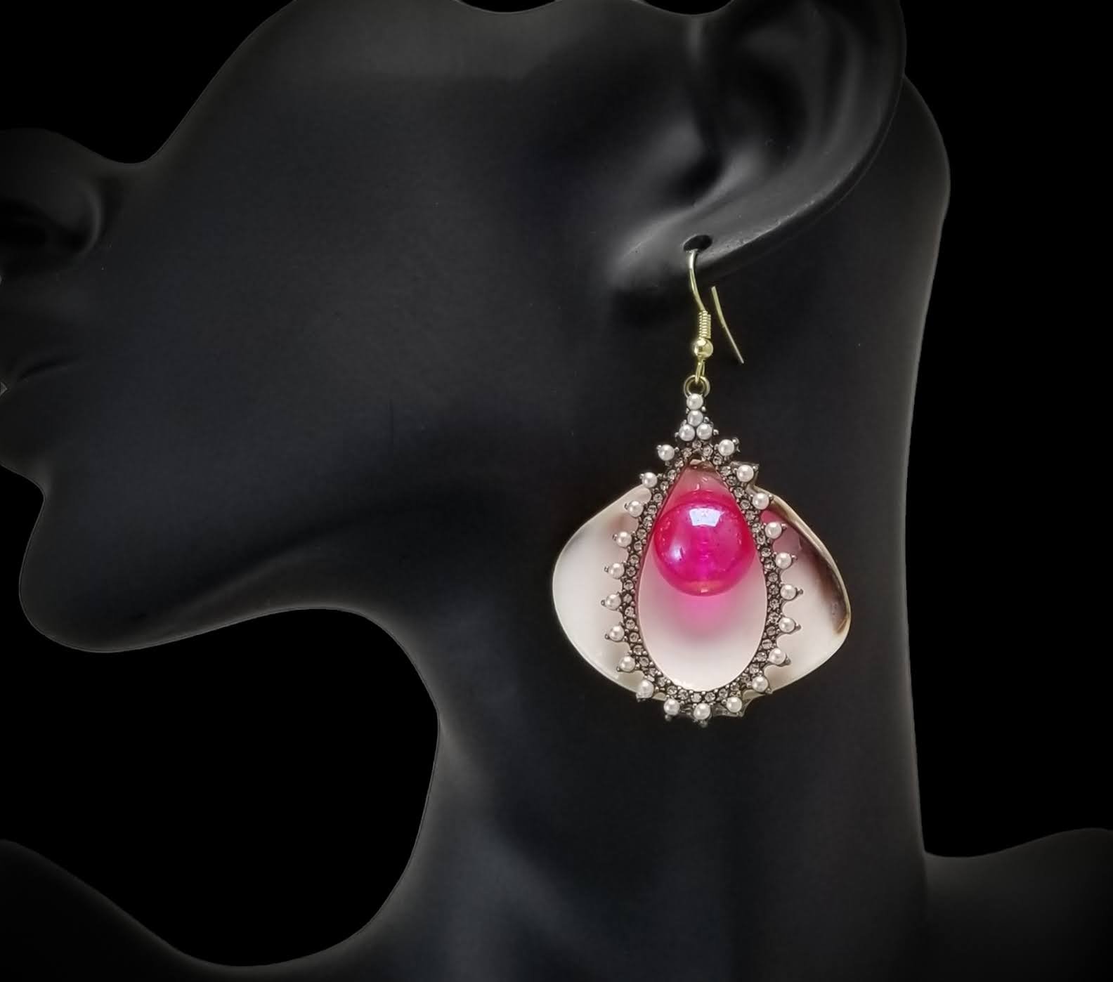 Item # 801714- 2in Accent ball with metal stone/pearl open drop. Back shell. Gold flat hooks.
