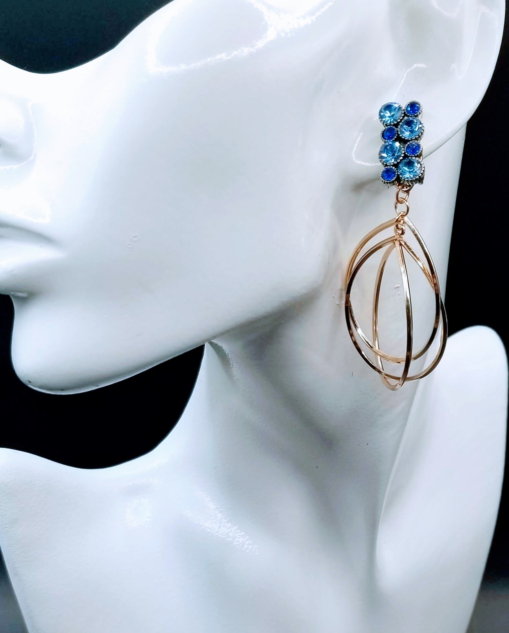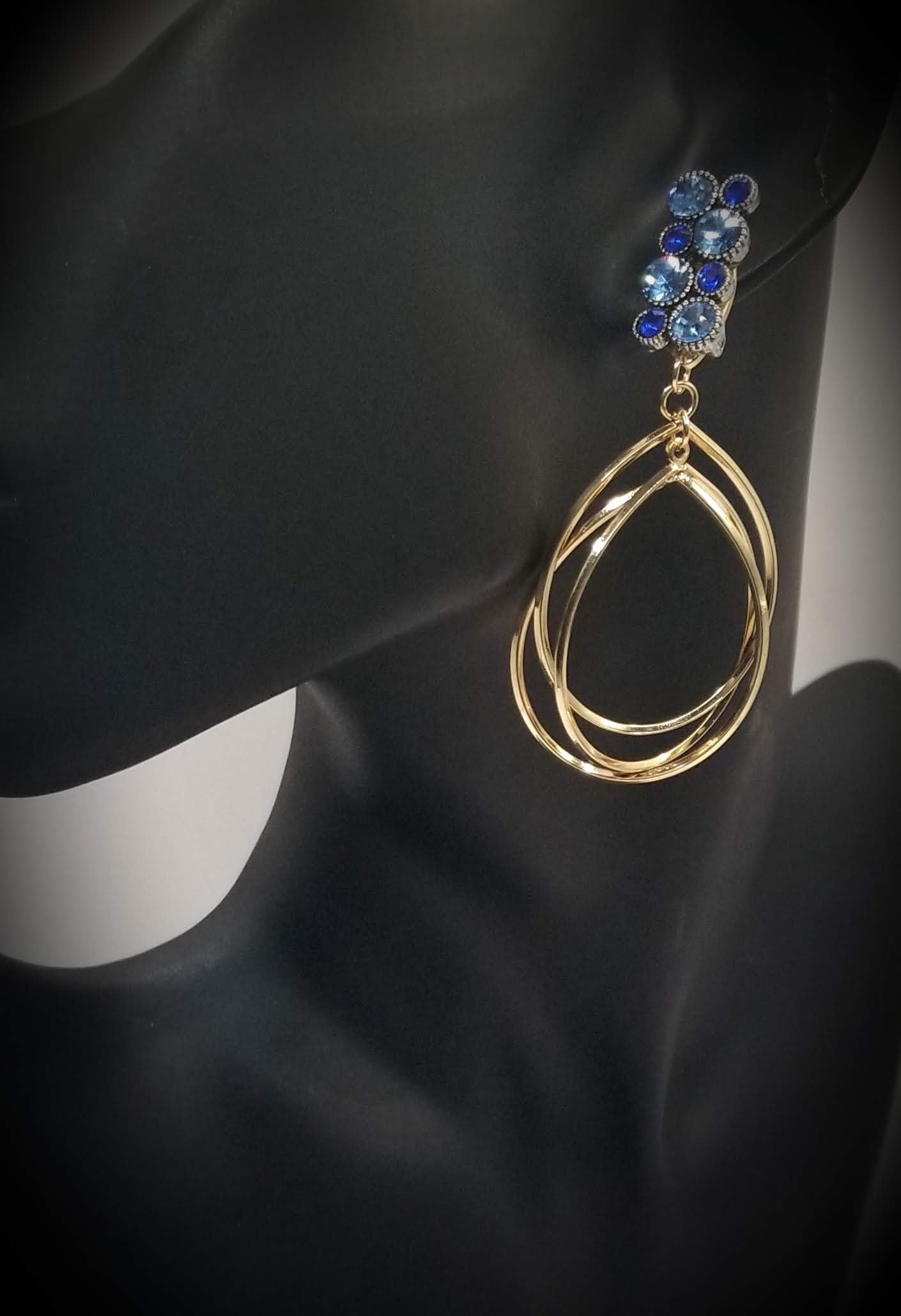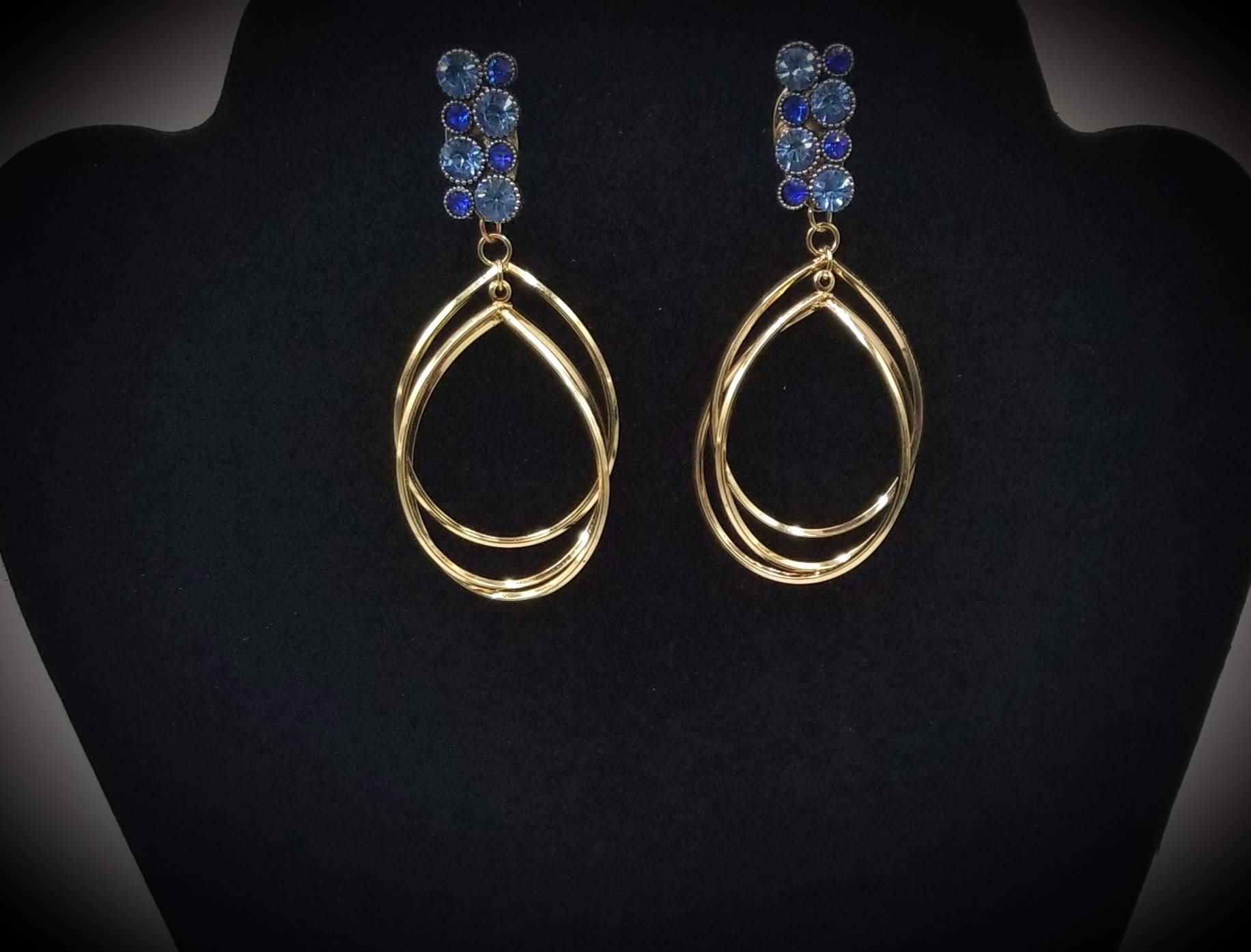 Item #901432 - 2.5 inch - Jewel stone studs with intertwind gold tone, open face drops.