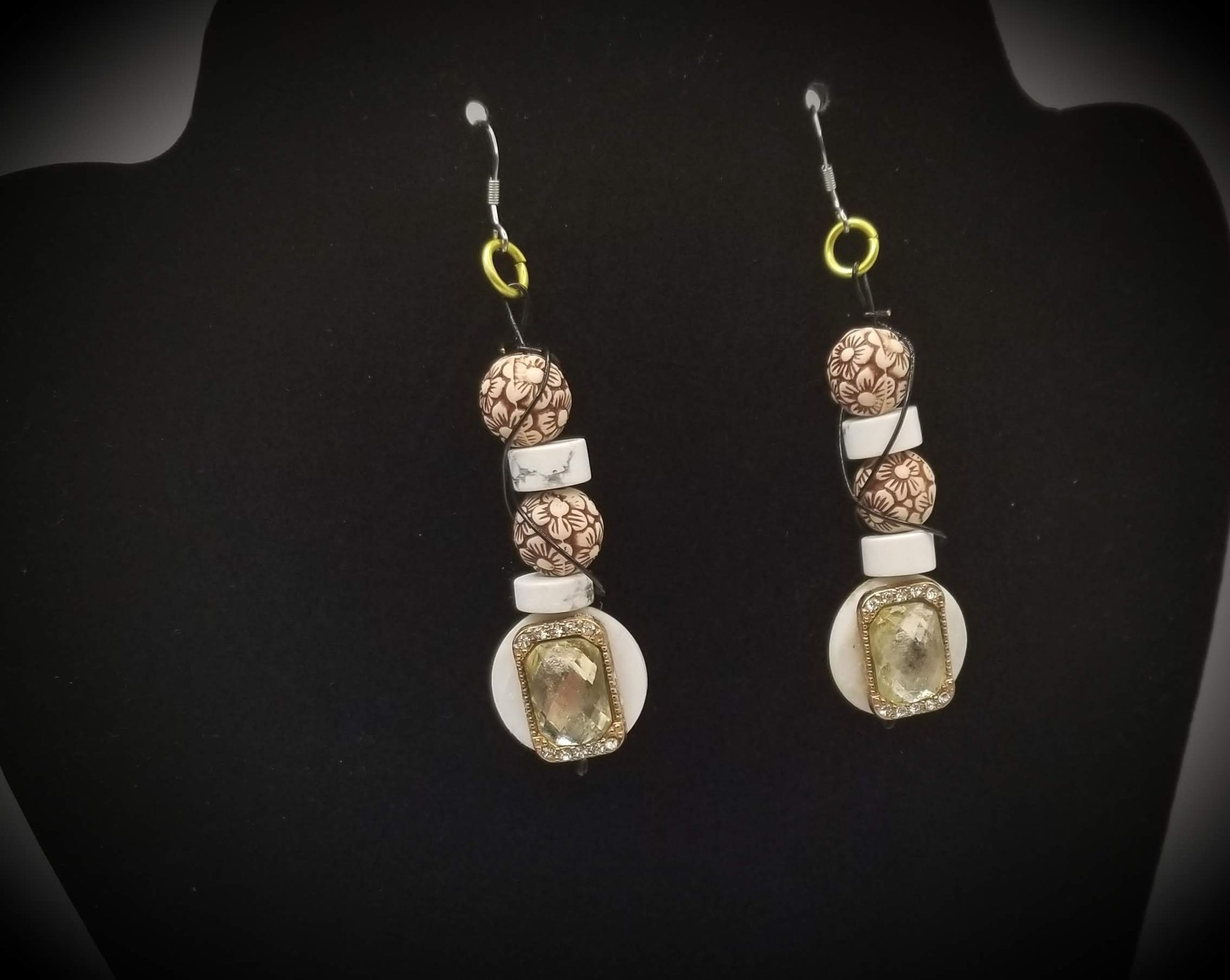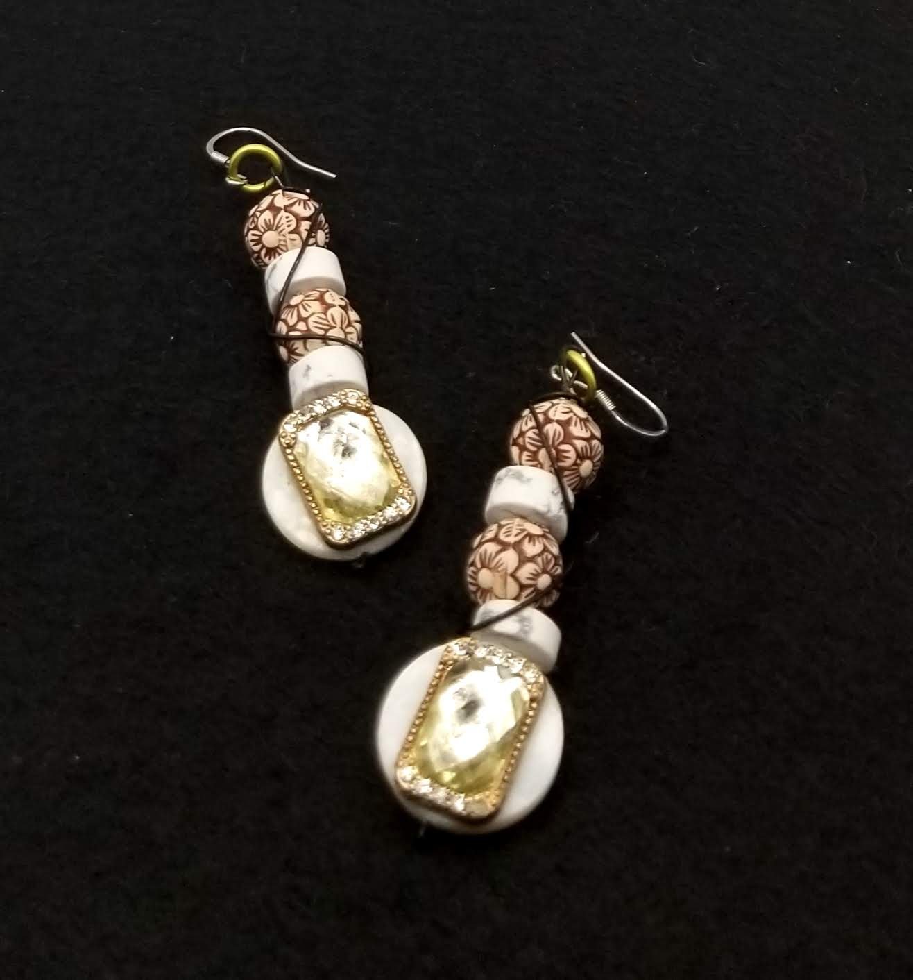 Item #900437 - 2.5 inch Deco Howlite mix, metal set shell flat back drops. Stainless steel hooks.