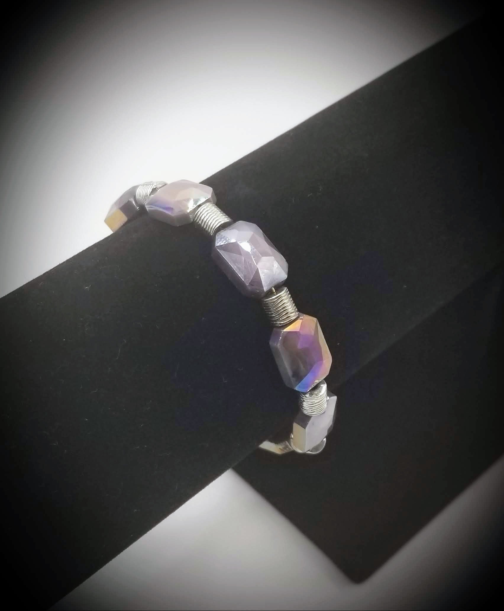 Item# 901012 - 7.5 inch - Lavender faceted glass paired with silver barrel accents. Brush silver lobster claw.
