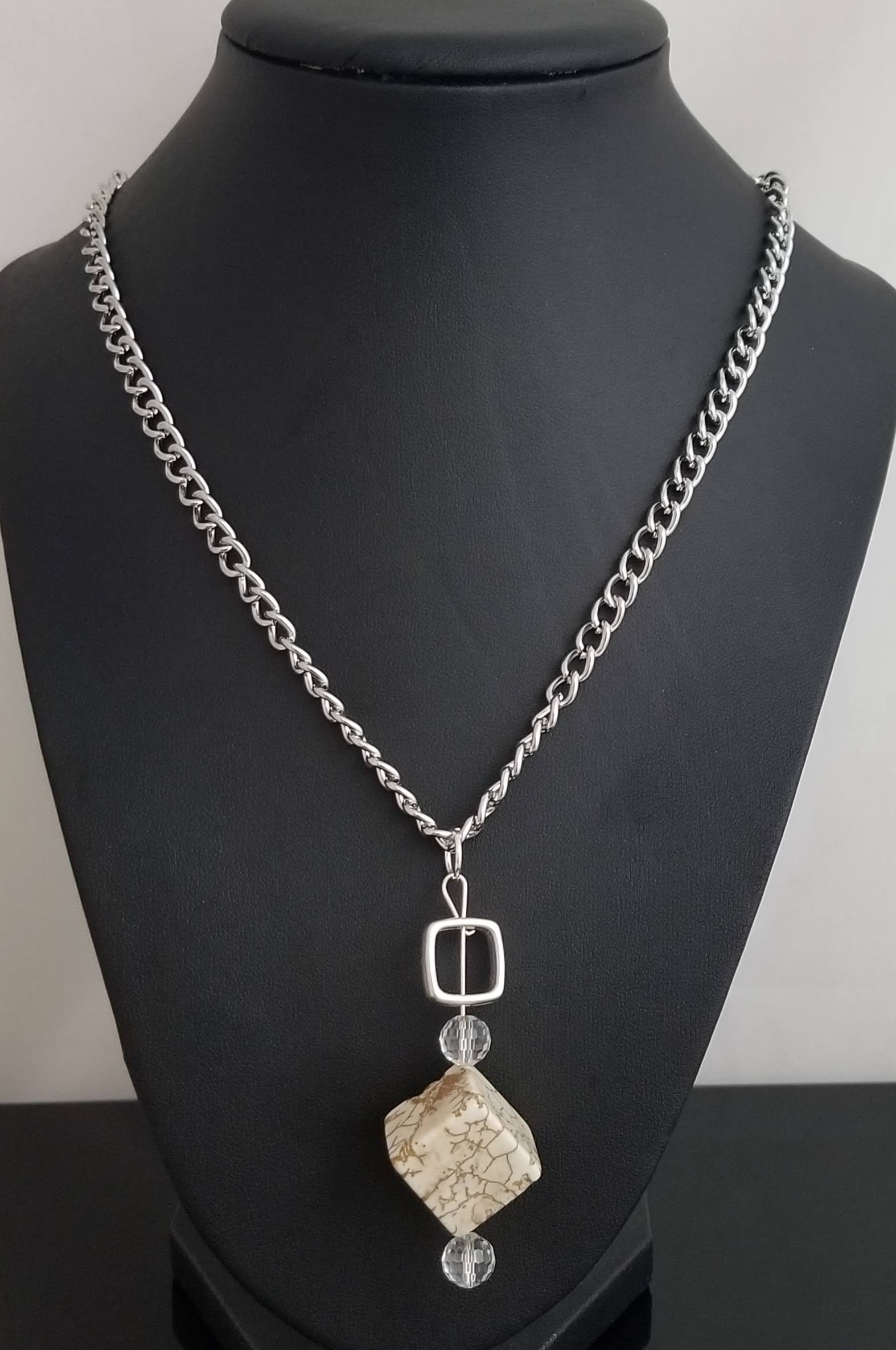 Item #801340- 19 in. Silver chain paired with 2.5 in Crackle accent deco drop. Silver claw clasp.