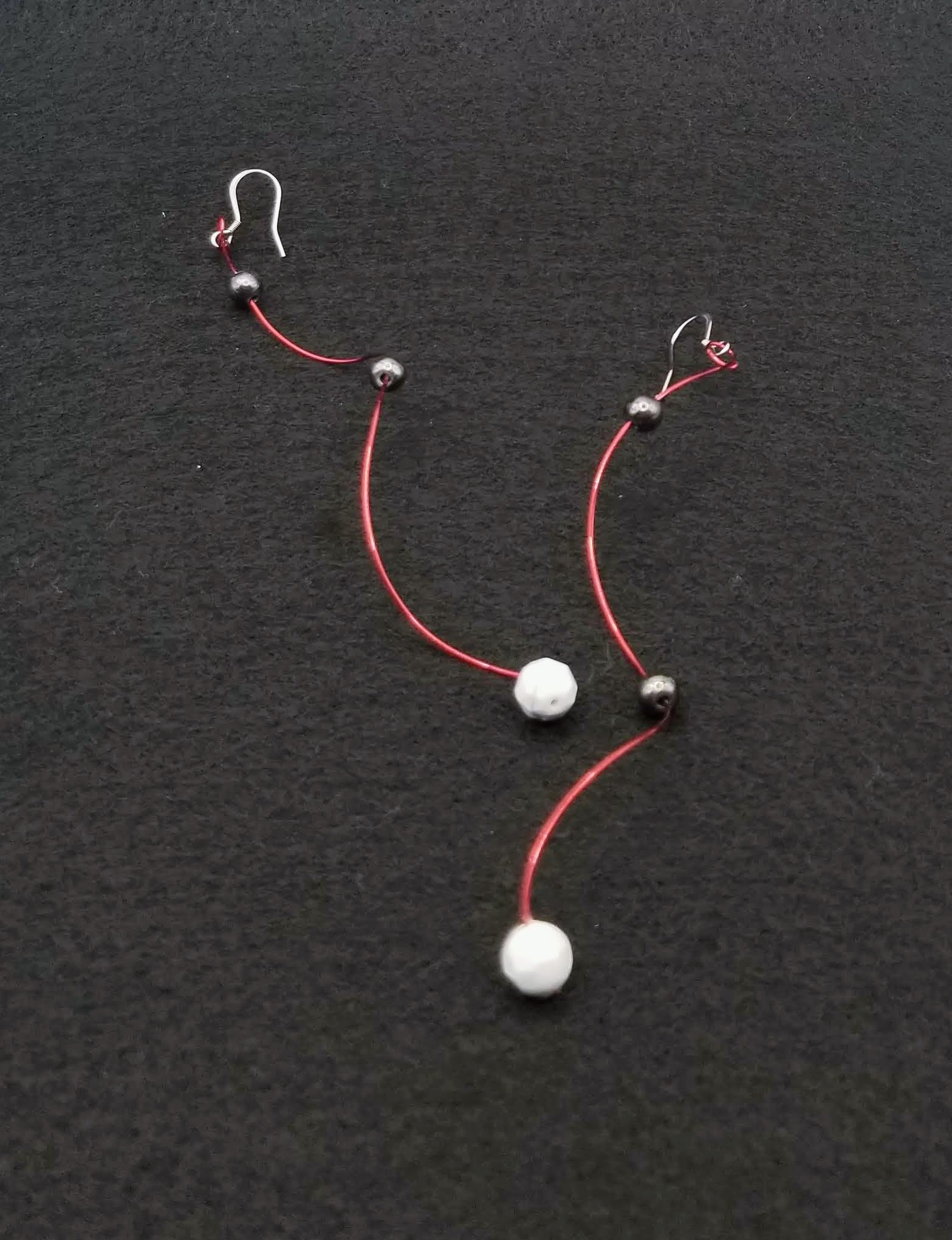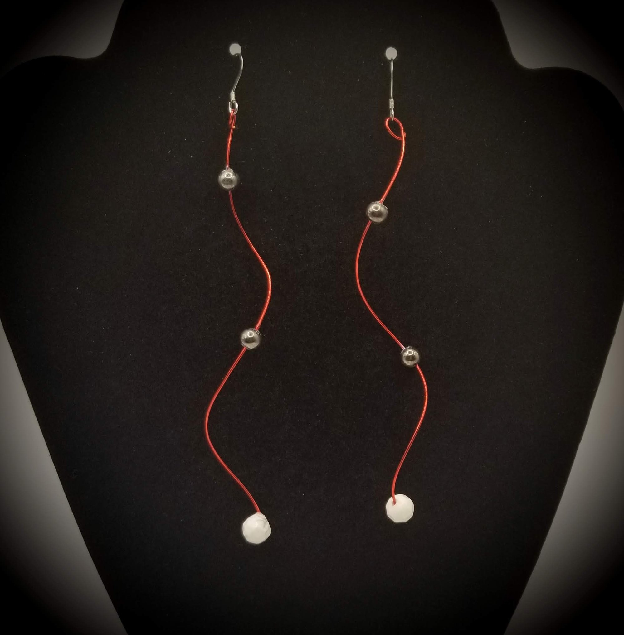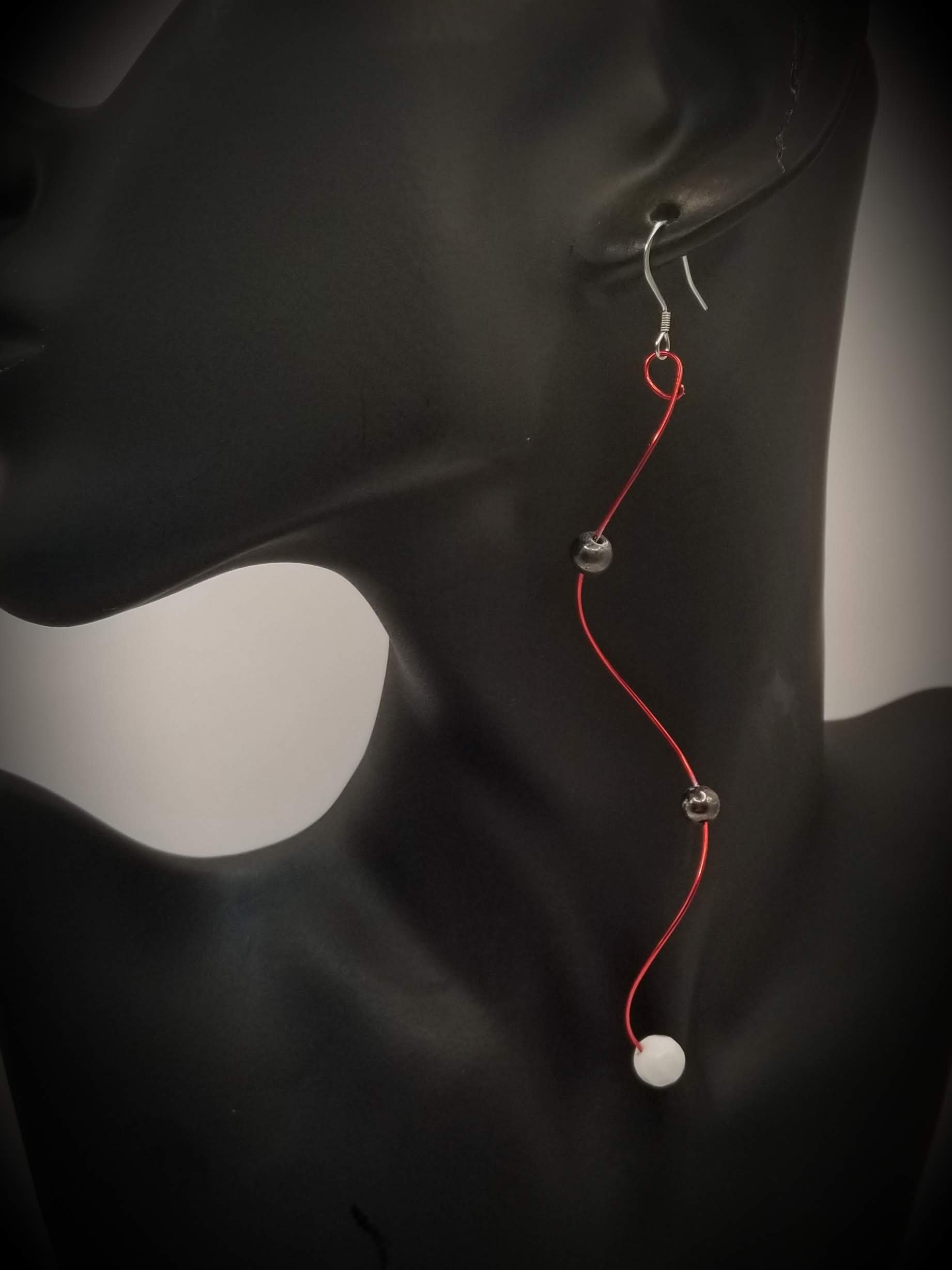 Item# 901007 - 4.5 inch - Swivel twist wire with Hematite and Howlite floating accents. Sterling silver flat hooks.