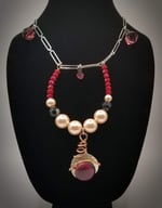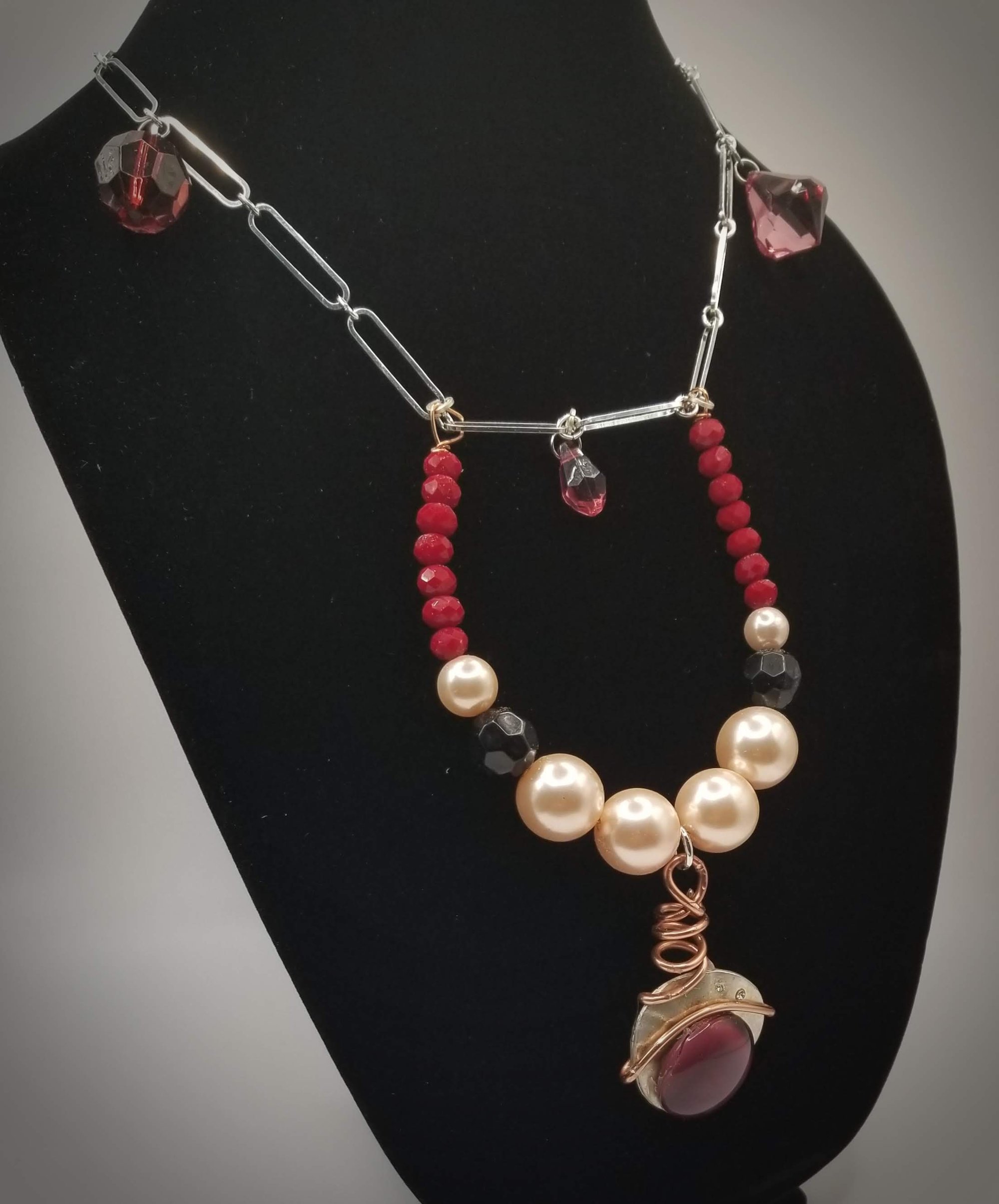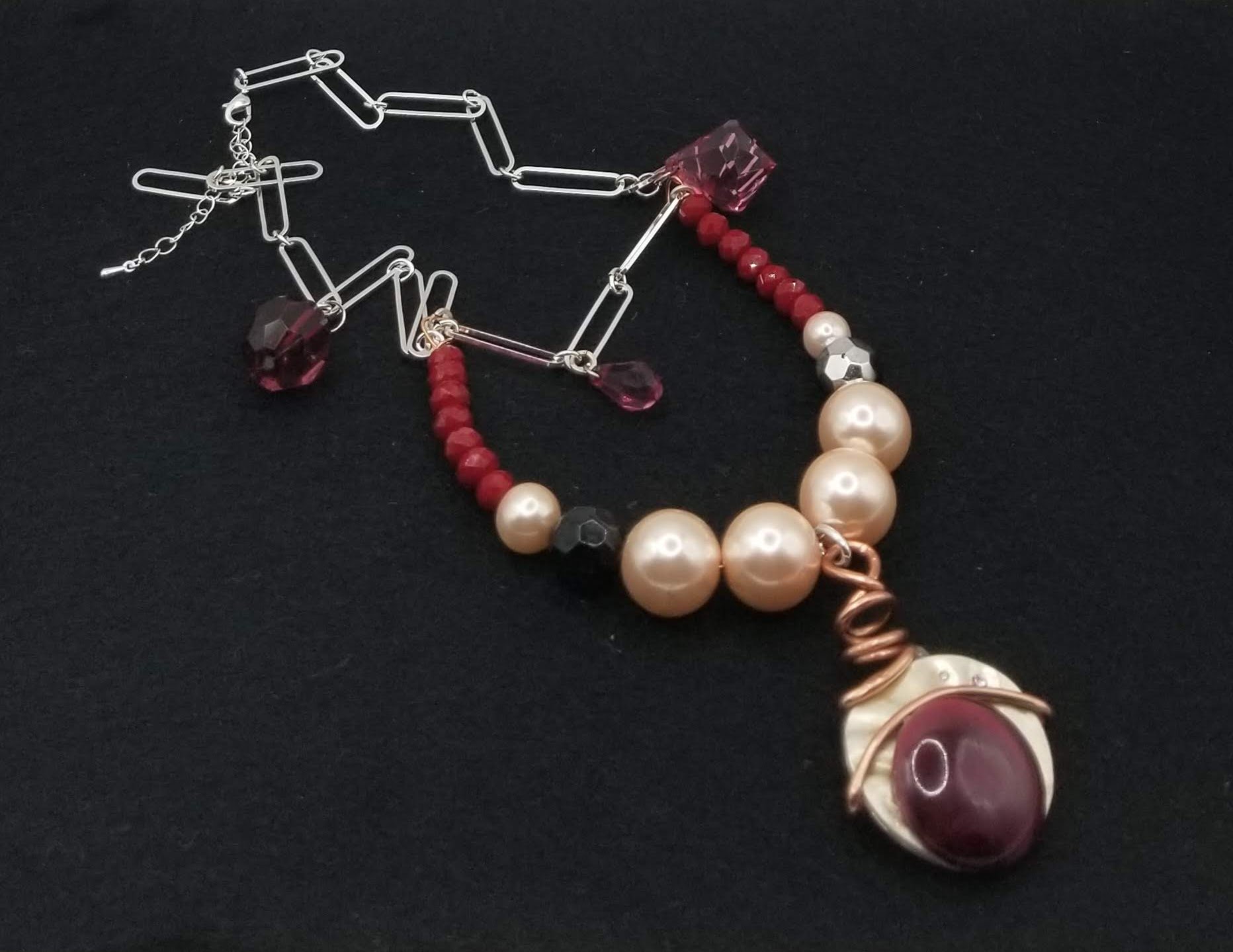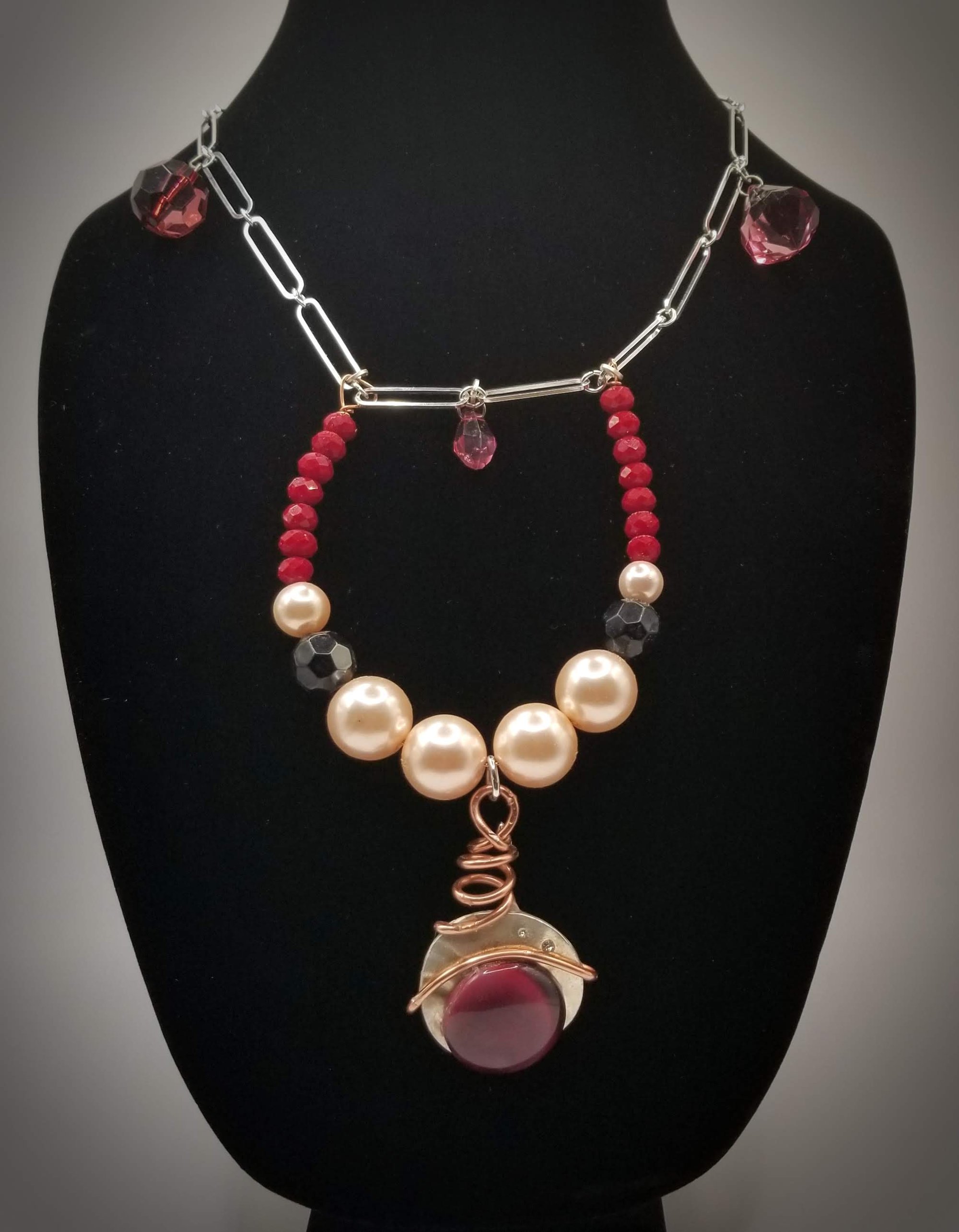 Item #811224-22 inch adjustable paper clip back chain/lobster claw. 6.5 inch drop. Rondelle/Pearl bead mix, rose twist connect accent drop. 2 inch Earrings on Stainless Steel leaver backs.
