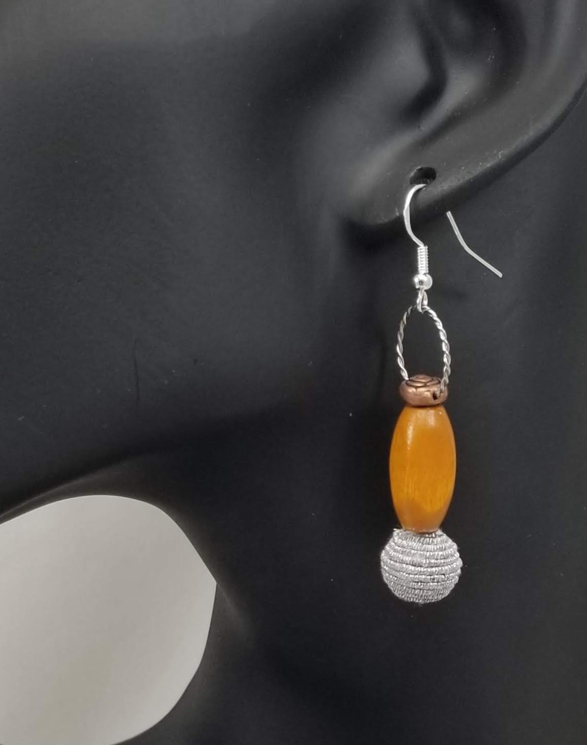Item# 723573- 2in long - Wood paired with Silver coil bottom accents. Sterling Silver hooks