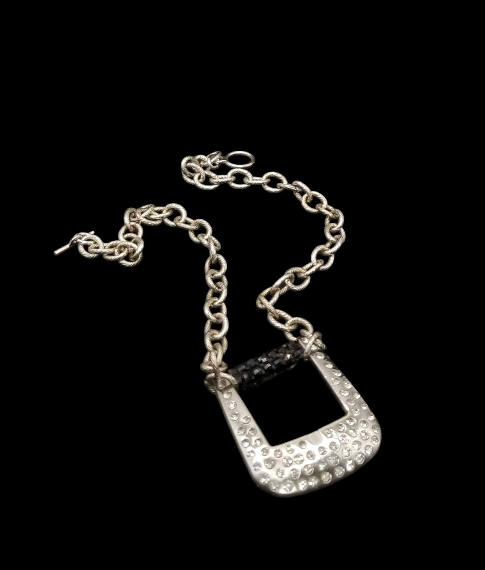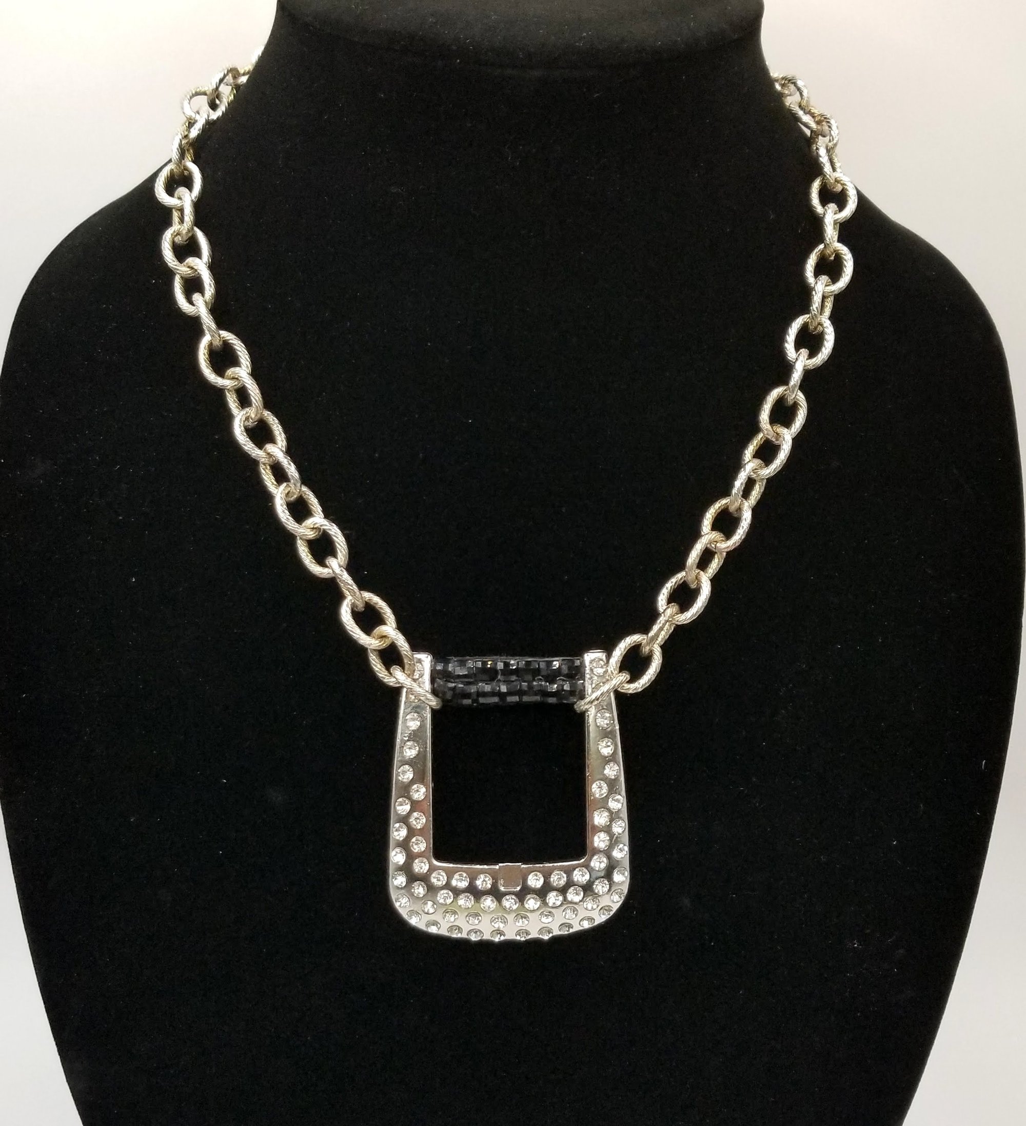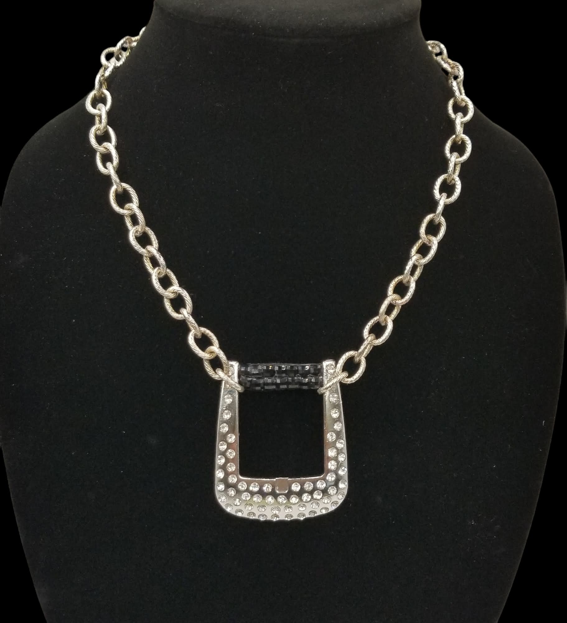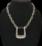 Item #901162 - 19 inch - Buckle accent drop with jet center accent. Silver metal chain and toggle clasp.