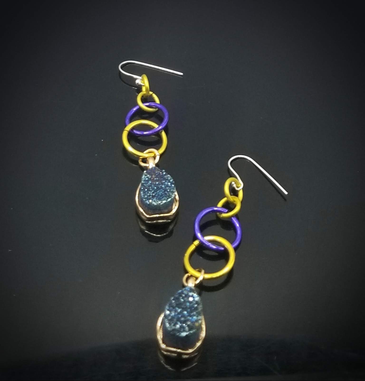 Item #900116-2 inch Tear Druzy drops with Color ring accents. Sterling Silver hooks.