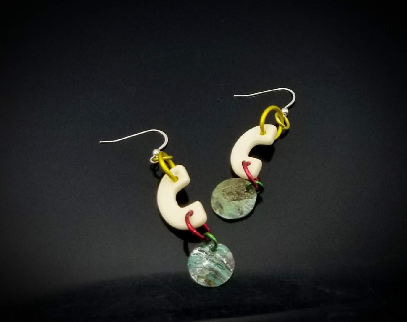 Item #900121- 2.5 inch Acrylic decos, Color rings, Flat shell accents drops. Sterling Silver flat hooks.