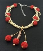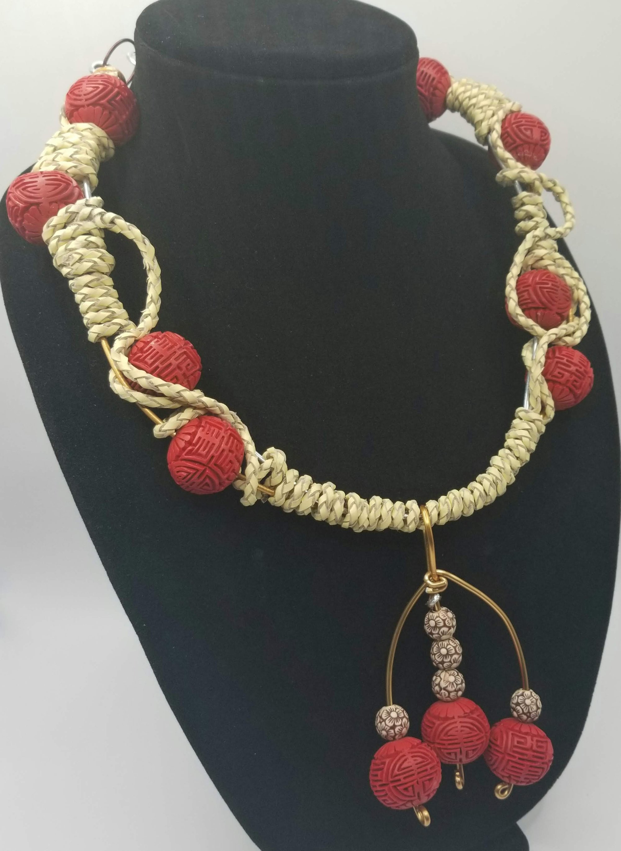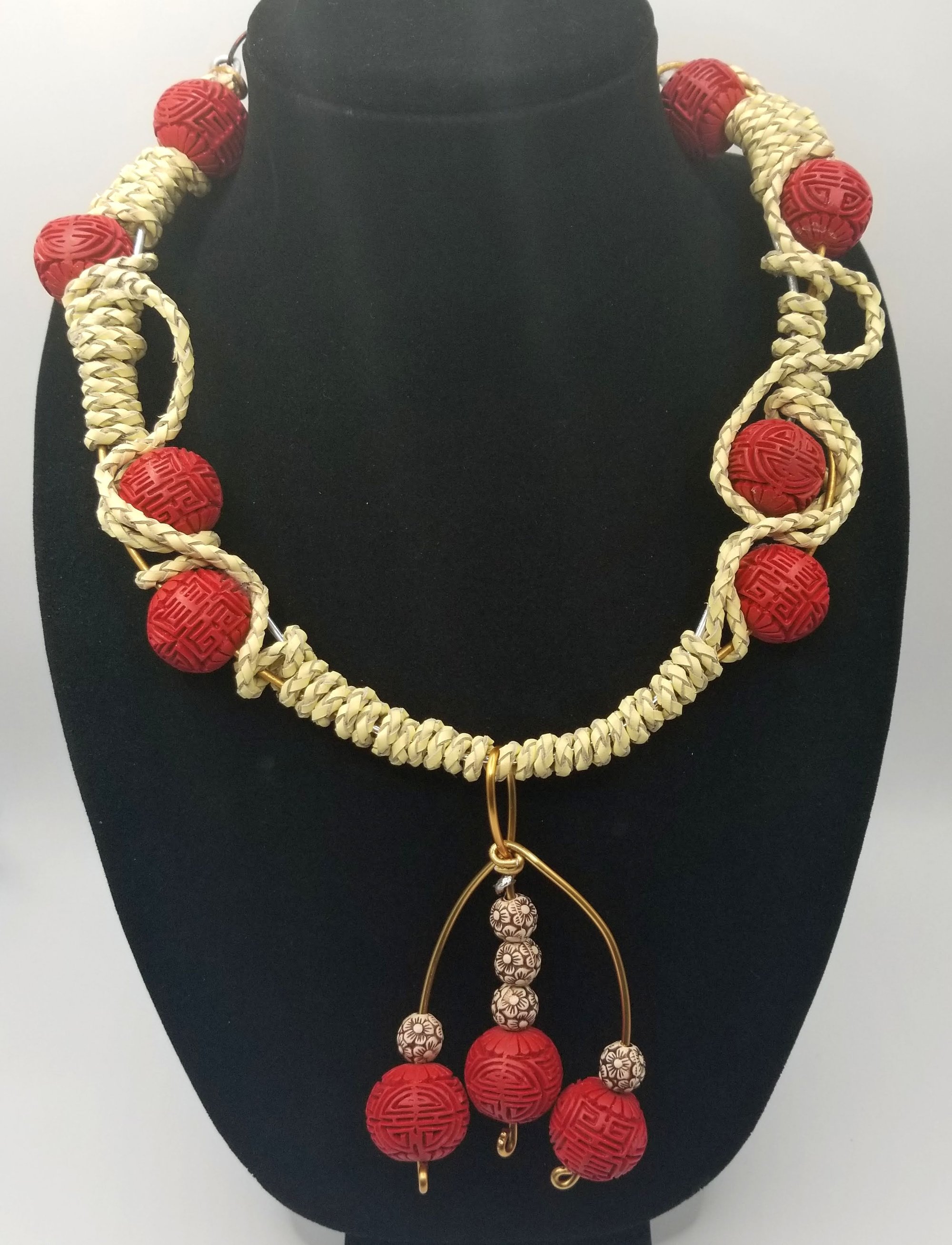 Item# 900305 - Shaped wire wrapped cording, deco accent bead drop. Silver adjustable back chain/lobster claw.