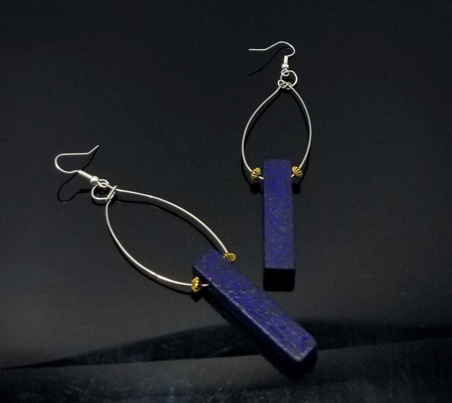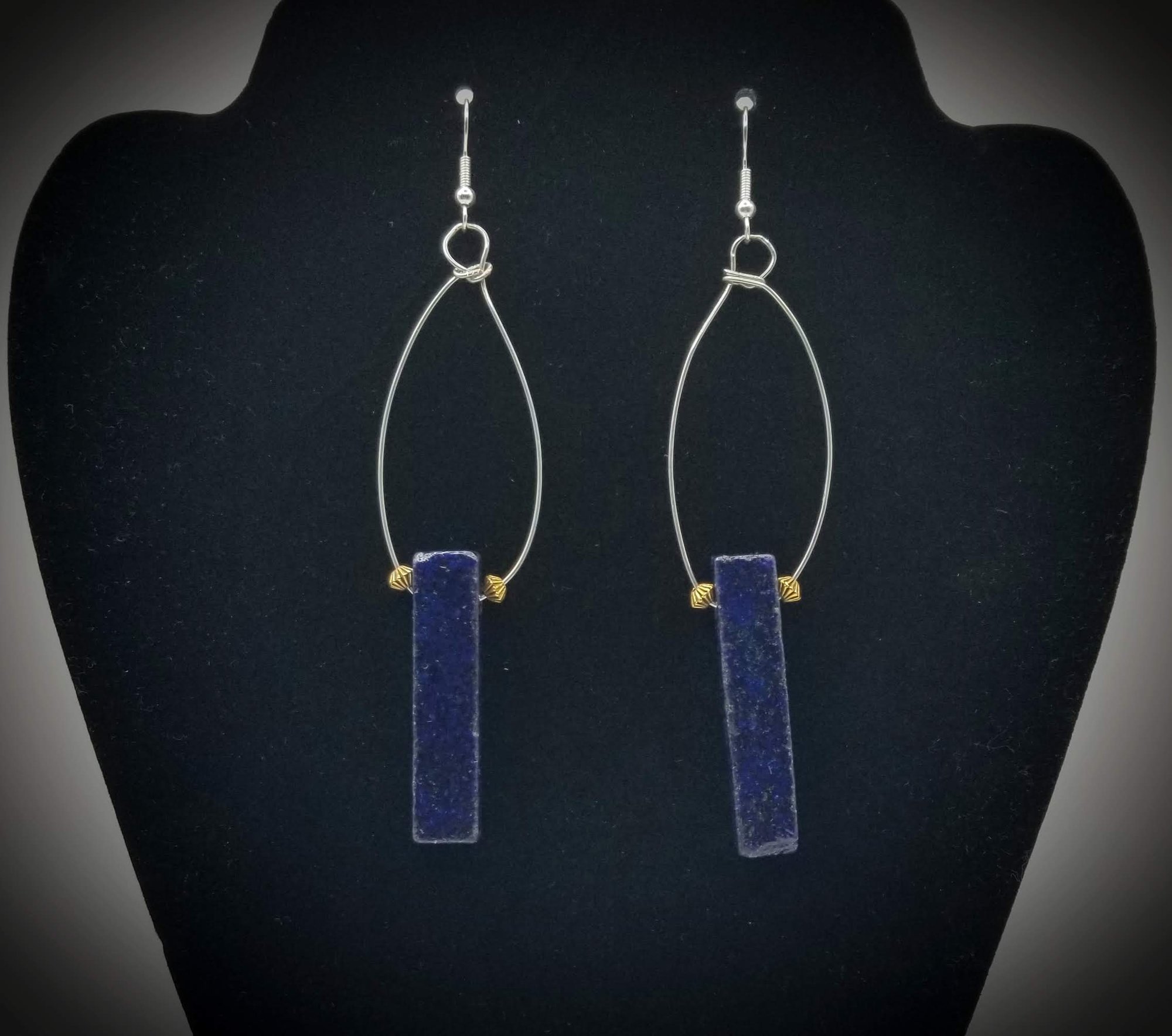 Item #900241-4 inch Open face wire twist with glazed stone drop, gold bead deco side accents. Sterling silver hooks.