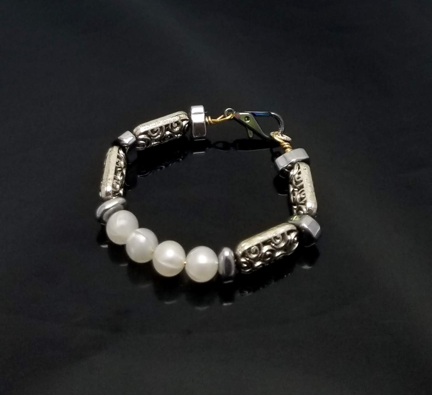 Item #806752-8 inch Deco accents with twirl pearl front. Iridescent lobster claw clasp