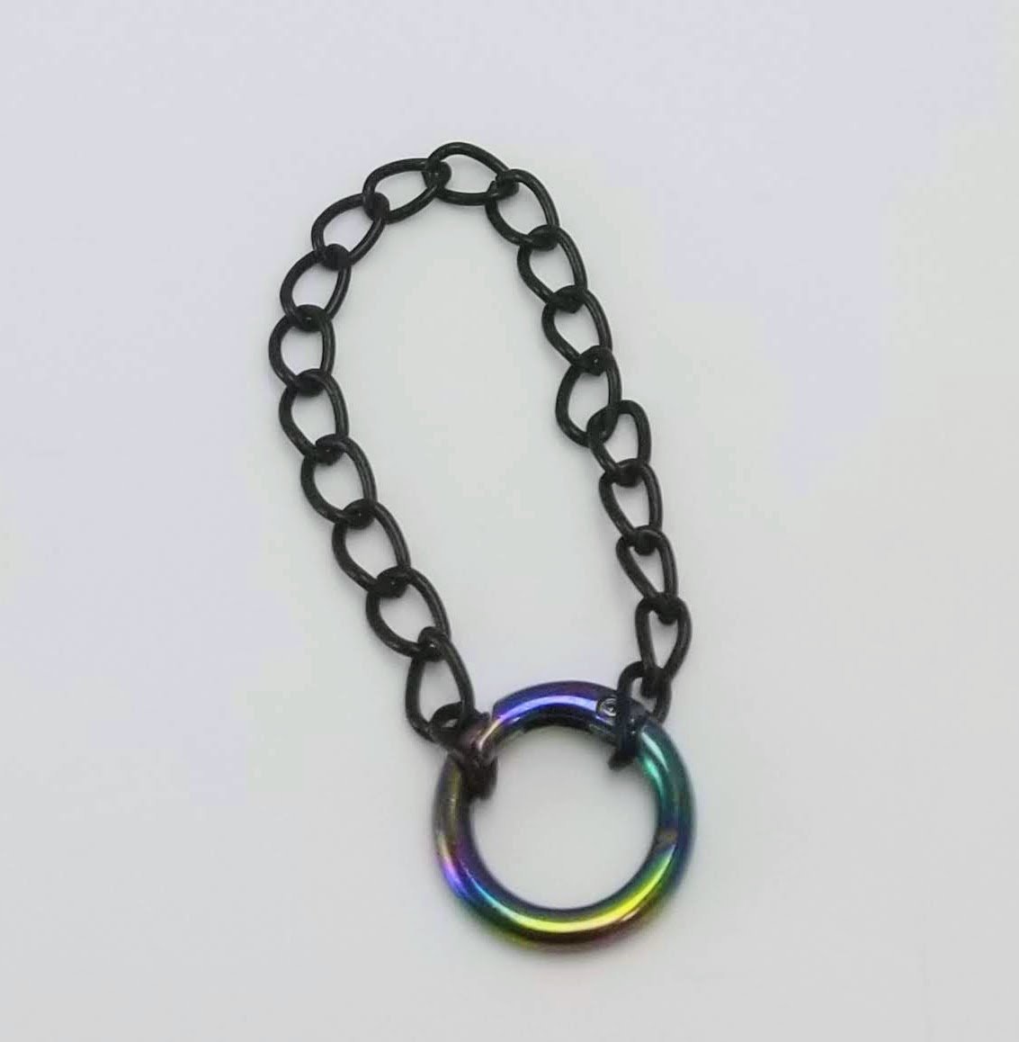 Item #805623- 7.5 inch flat jet metal chain with Iridescent jumbo clasp