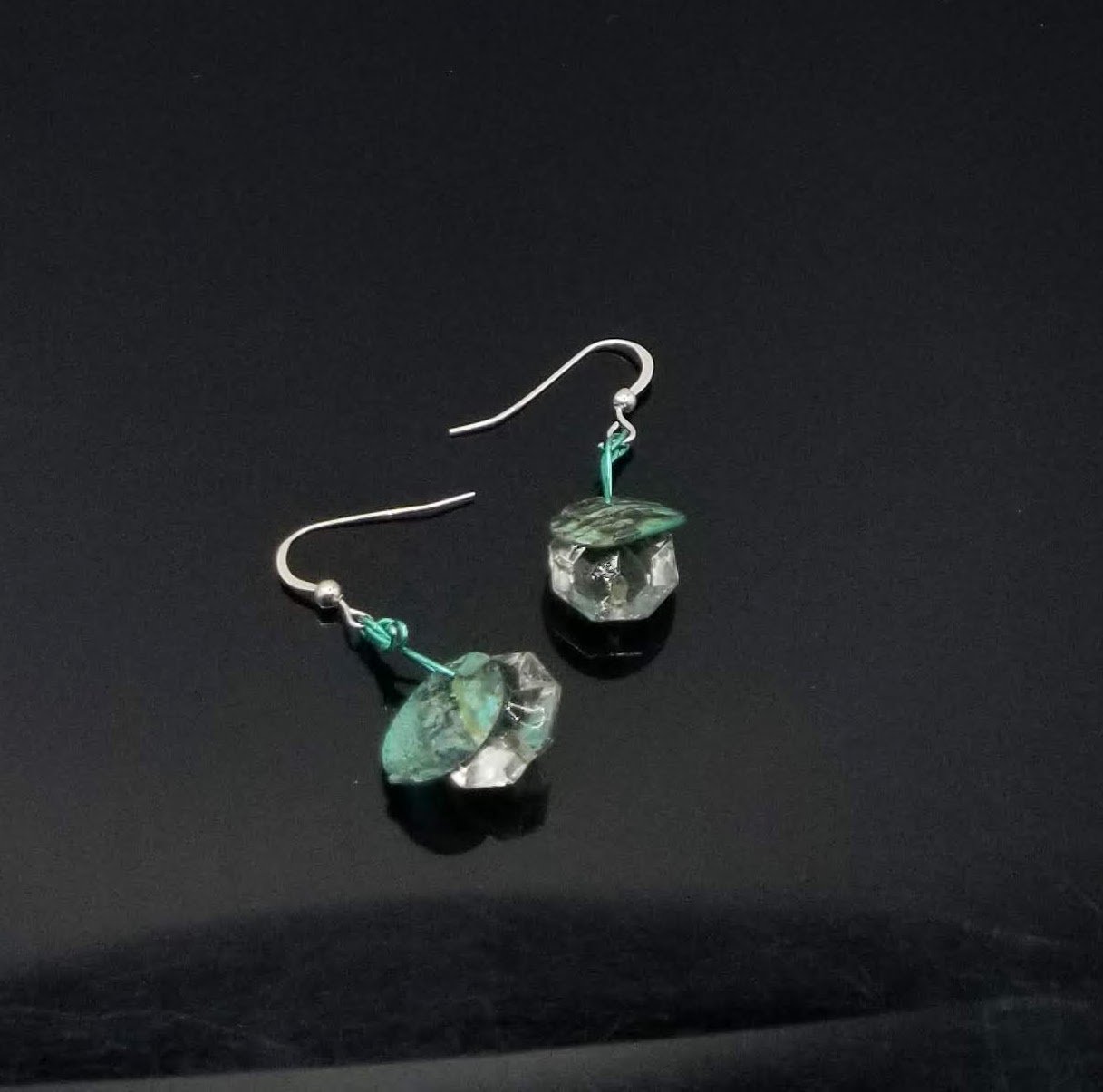 Item #900132-1.5 inch Faceted acrylics paired with flat shell accents. Sterling Silver flat hooks.