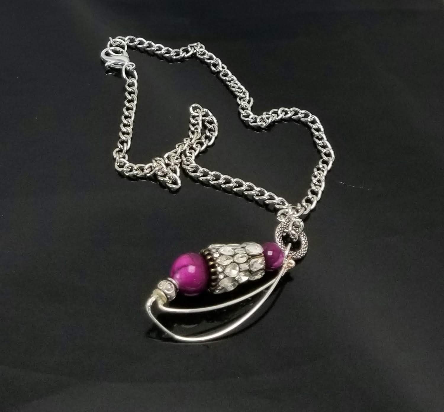 Item# 802366-19 in- Silver wire twist with jewel deco accent. Silver lobster claw.
