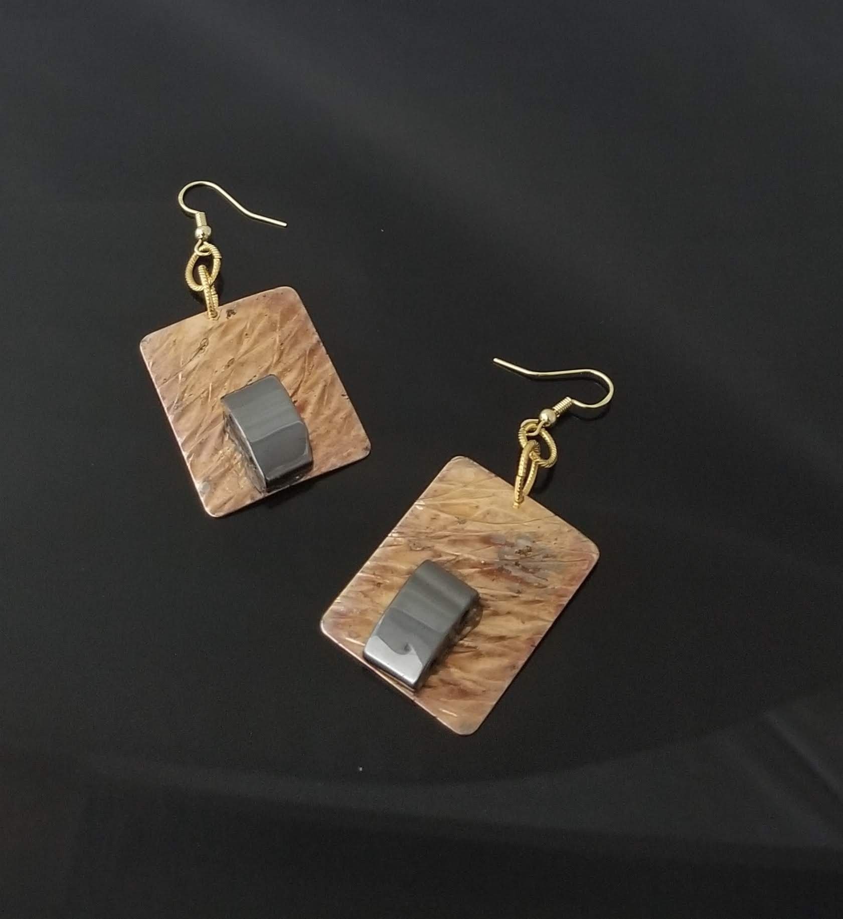 Item# 804227-2 in Metal flats with Hematite accents. Gold hooks