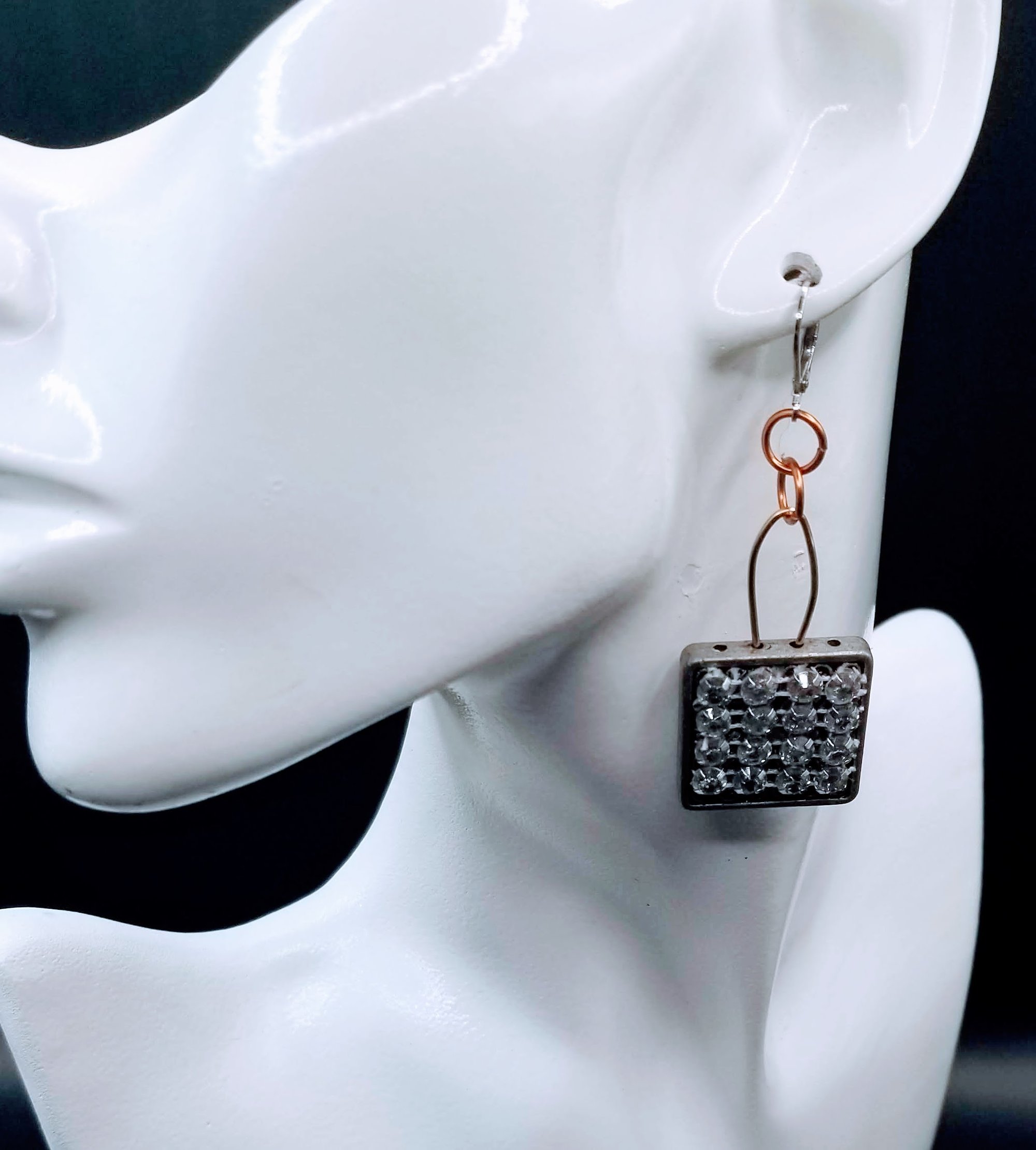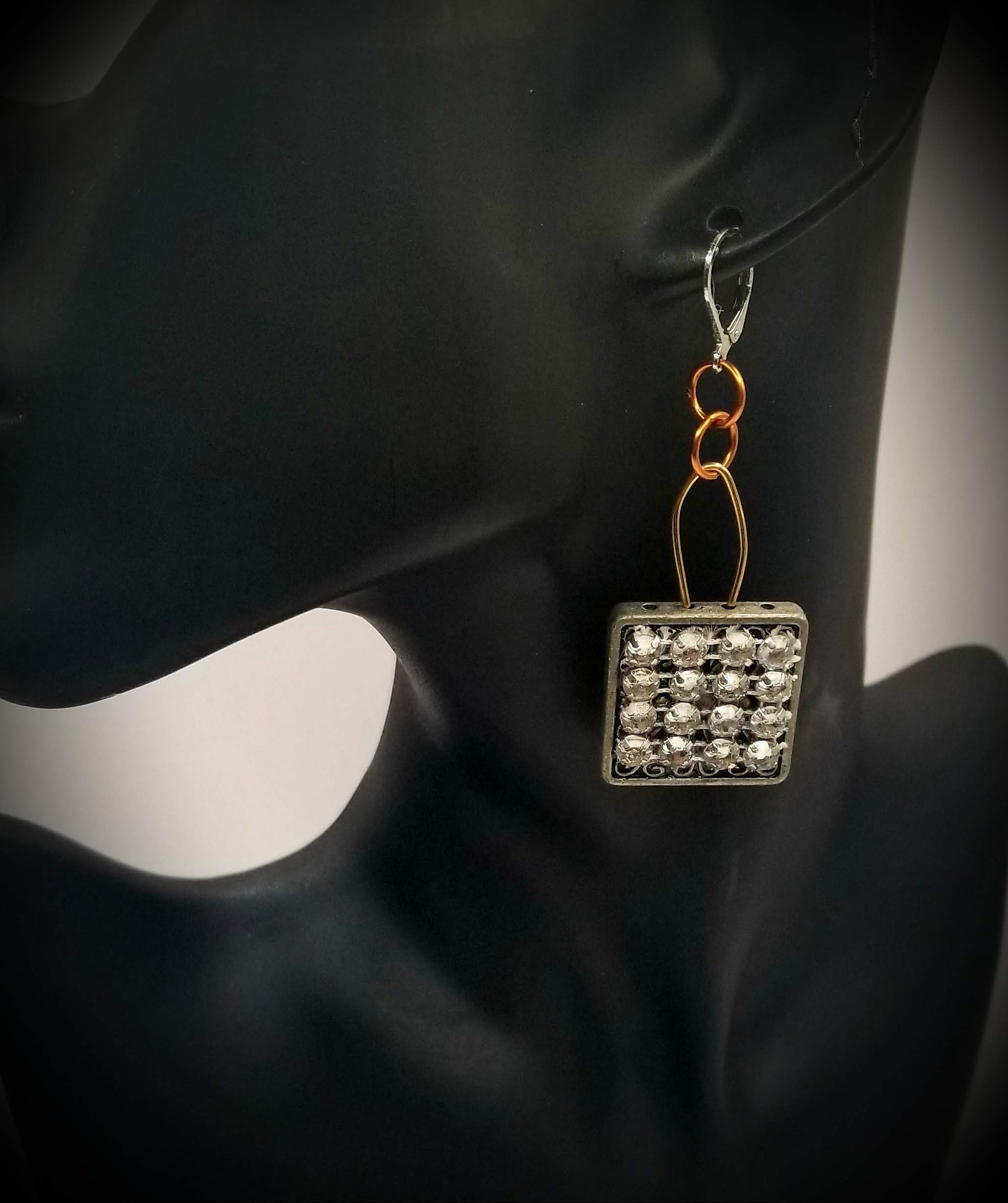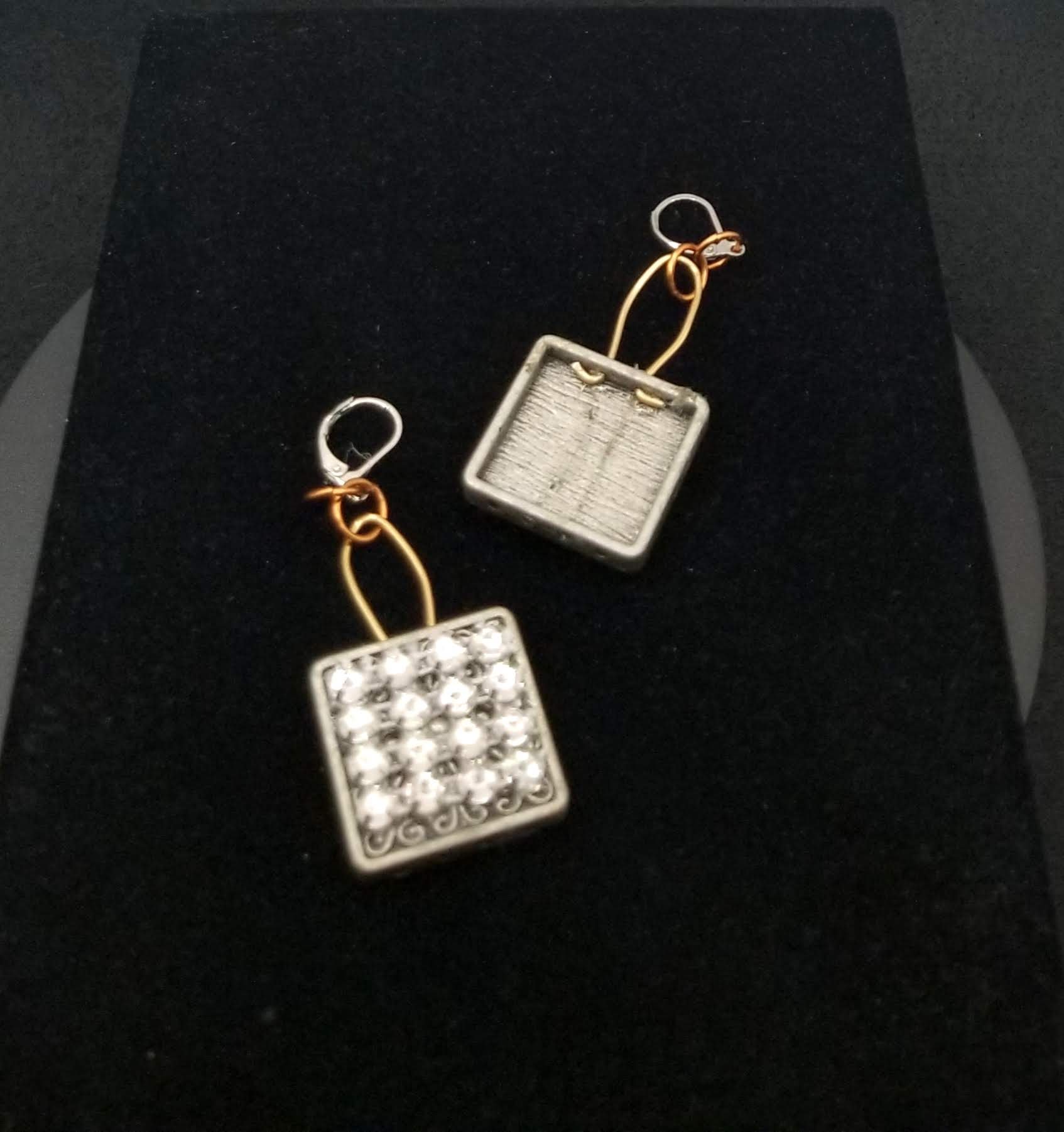 Item #901352 -2.5 inch - Square metal swingers with front deco accent. Gold wire connect. Stainless Steel leaver backs