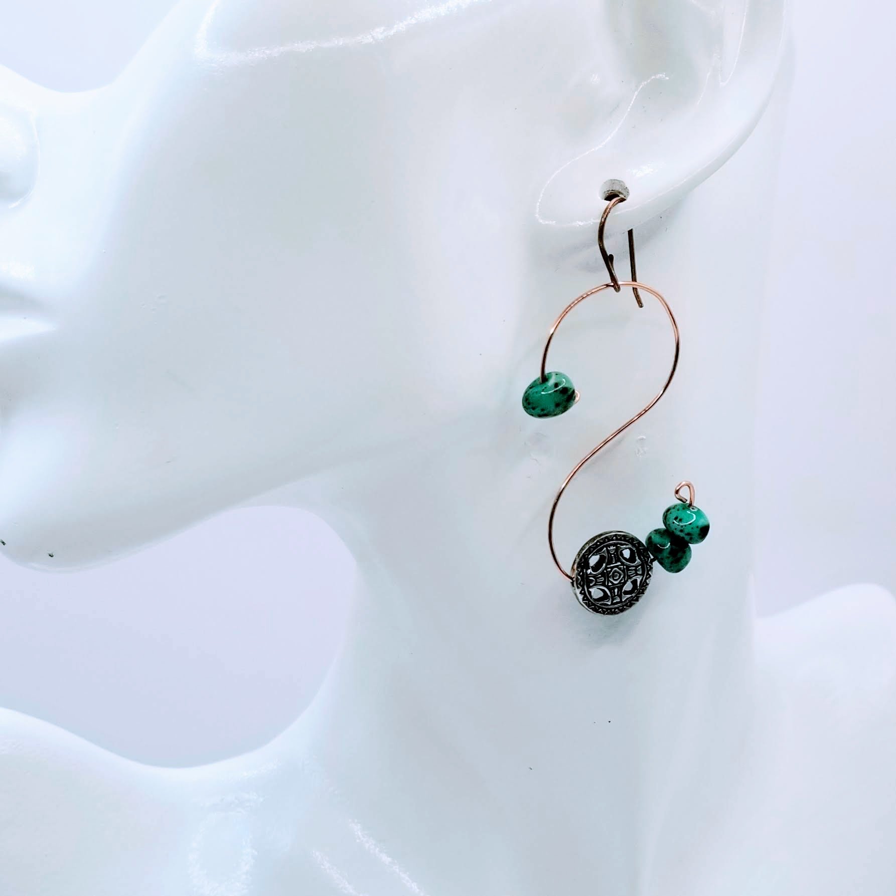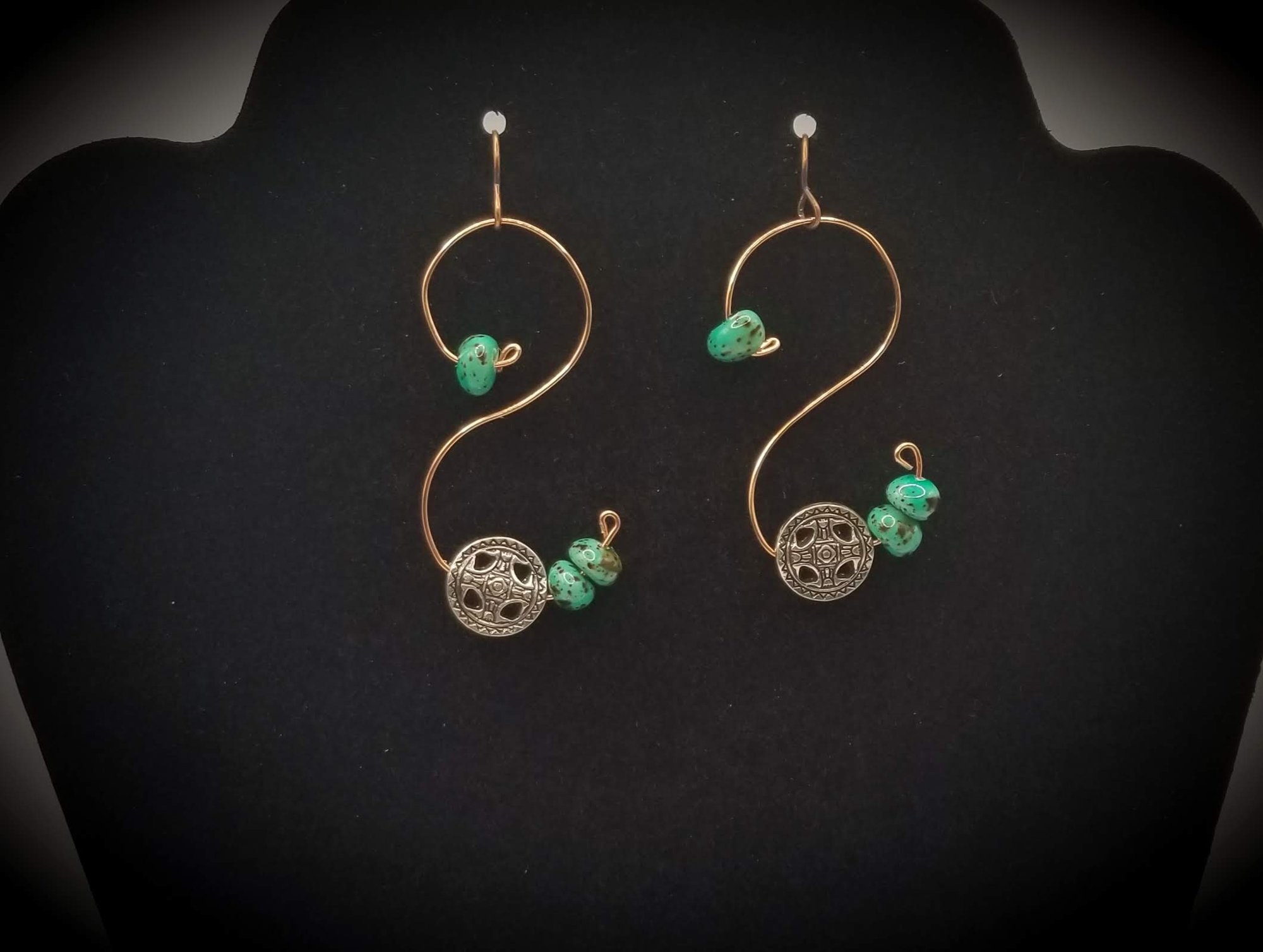 Item# 900931 - 2inch - Shaped rose wire with silver metal deco and Turquoise accents. Brush rose metal hooks
