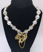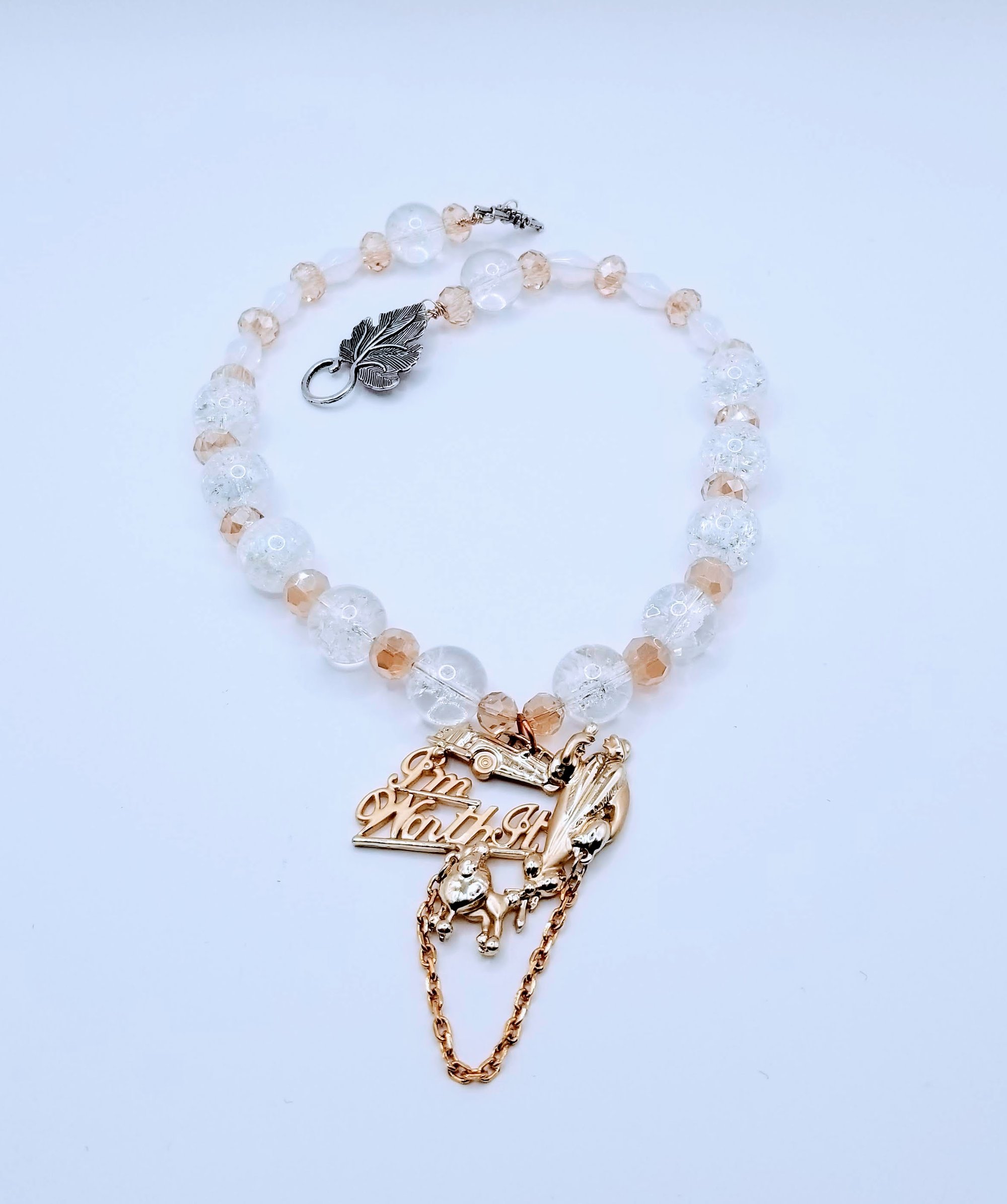 Item #901241 - 18 inch - Glass mix with Rondella accents, gold metal deco drop. Silver leaf toggle clasp.